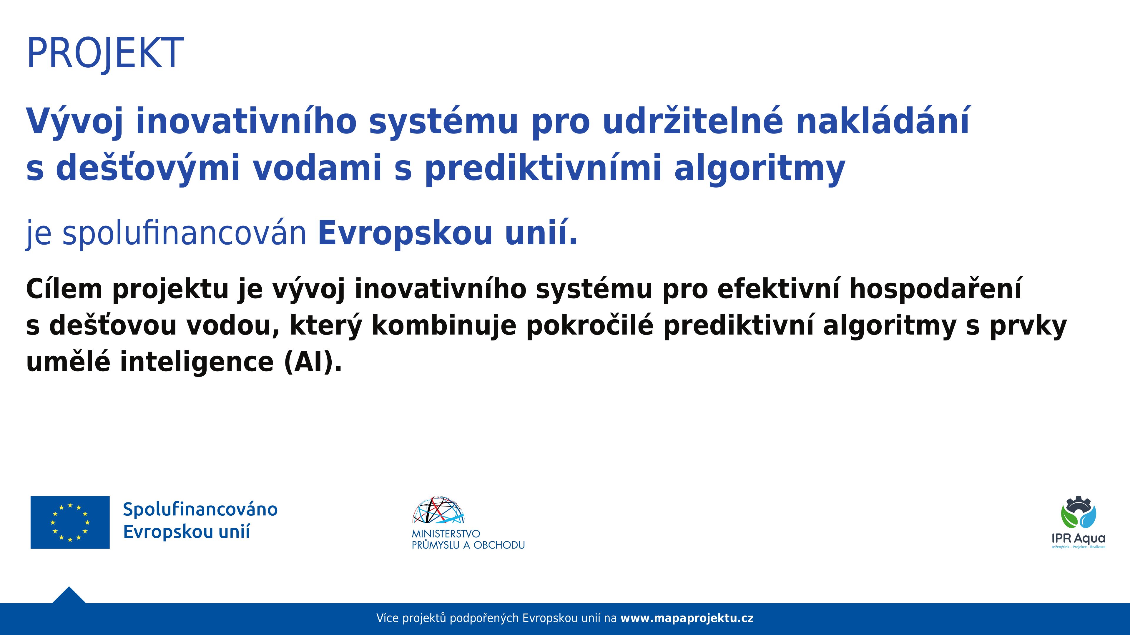 Cílem projektu je vývoj inovativního systému pro efektivní hospodaření s dešťovou vodou, který kombinuje pokročilé prediktivní algoritmy s prvky umělé inteligence (AI).