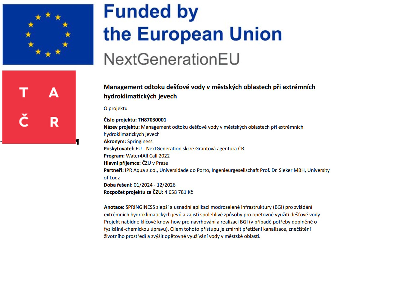 • ČZU v Praze, IPR Aqua, s.r.o. Universidade do Porto, Ingenieurgesellschaft Prof. Dr. Sieker MBH, University of Lodz